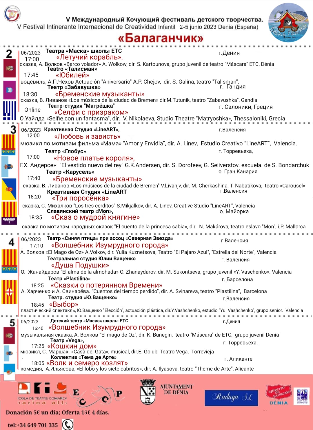 Информ: www.maskatheatre.com; сайт:МДС, сайт: СОРС Испании sors-spain.org , fasebook: / ЕМКФДТ «БАЛАГАНЧИК, Детский театр «Маска», журнал «Театрал».